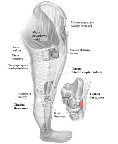- Pasmo biodrowo-piszczelowe nie ociera się o guzek wystający na zewnątrz kolana.