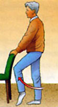 Powoli unieś do tyłu operowaną nogę. Postaraj się utrzymywać plecy wyprostowane. Utrzymaj pozycję przez    2-3 sekundy. Połóż stopę z powrotem na podłodze.